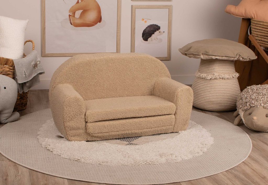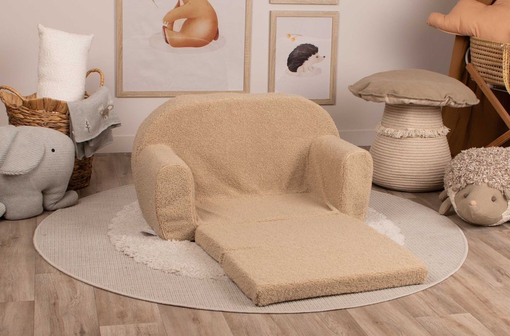 Med sin smarta design kan Fluffy Hug enkelt fällas ut till en liten säng, vilket gör den idealisk för vilostunder eller en mysig plats för lek och sagostunder. Anpassad för barn mellan 9 månader och 4 år. Låt barnen sjunka in i fluffig komfort och känna sig omfamnad varje gång de sätter sig i sin Fluffy Hug! Soffan är lätt vilket ger barnen friheten att själva ska kunna flytta runt den. Dessutom är allt innehåll tillverkat av skum som ger mjuka kanter och säkerställer en trygg användning.