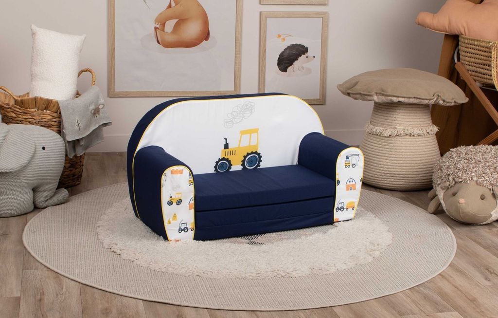 Tiny Tractor bäddsoffa kan enkelt fällas ut till en liten säng, perfekt för mysiga vilostunder efter en dag fylld av lek och upptäckter. Anpassad för barn mellan 9 månader och 4 år. Soffan är lätt vilket ger barnen friheten att själva ska kunna flytta runt den. Dessutom är allt innehåll tillverkat av skum som ger mjuka kanter och säkerställer trygg användning.