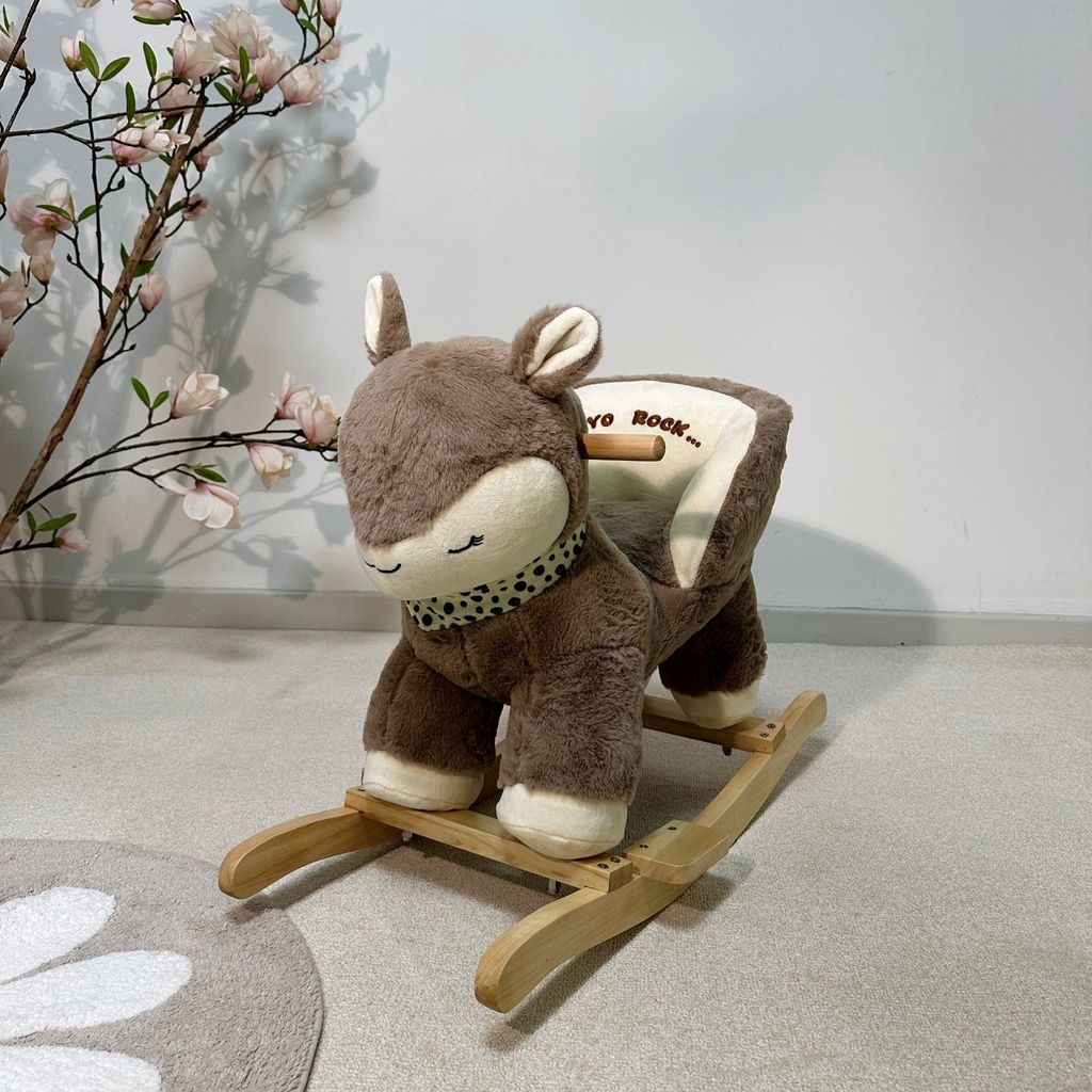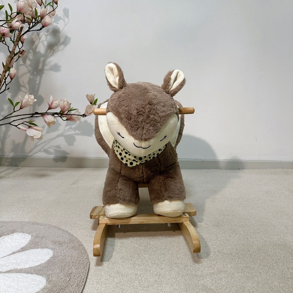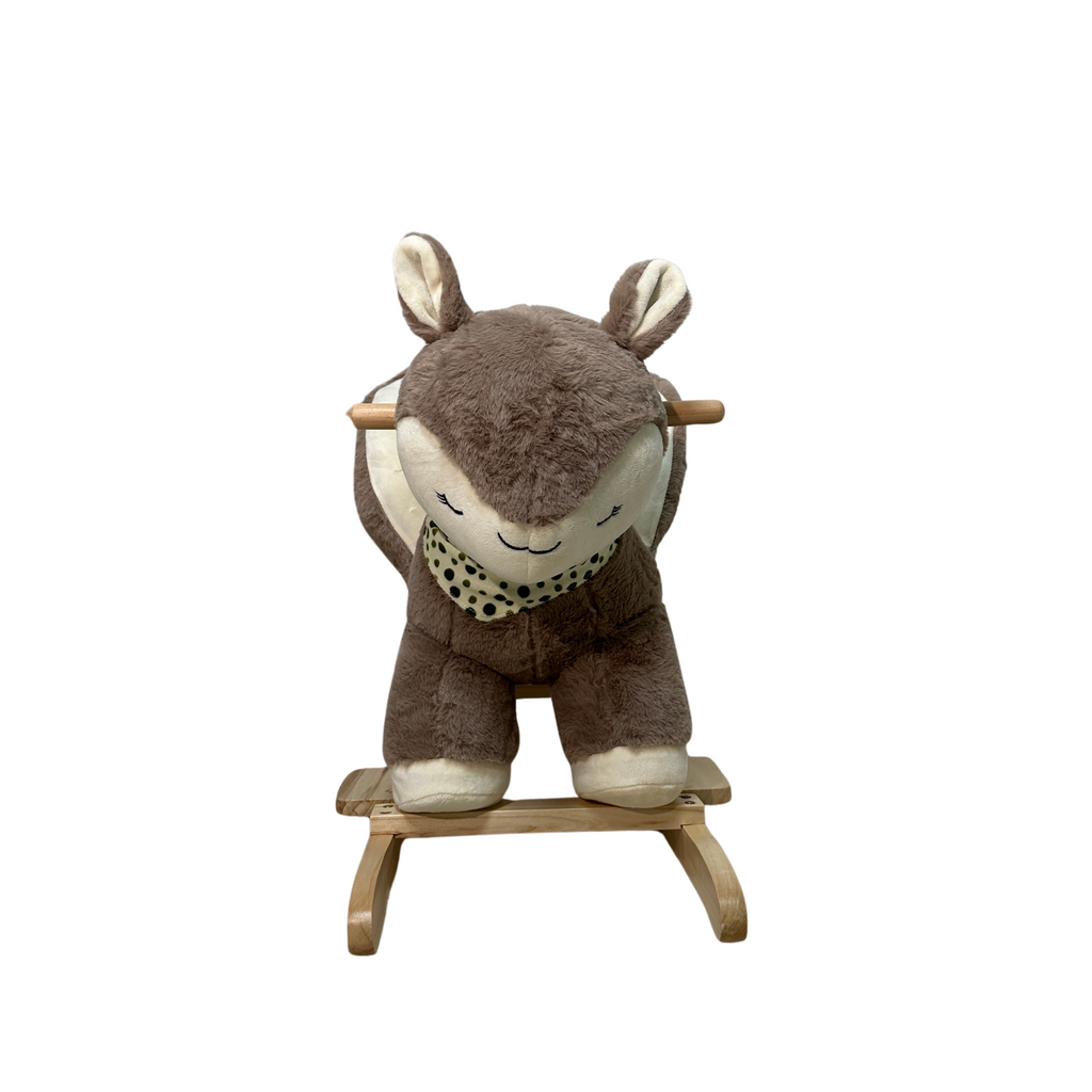 Låt barnets fantasi ta fart med den bedårande Bambi Bliss, ett charmigt gungdjur som bjuder på både lek och trygghet. Den mjuka, plyschklädda designen gör Bambi både bekväm och säker för små barn. De stadiga trämedarna och de greppvänliga handtagen gör att barnet kan gunga säkert och med glädje.