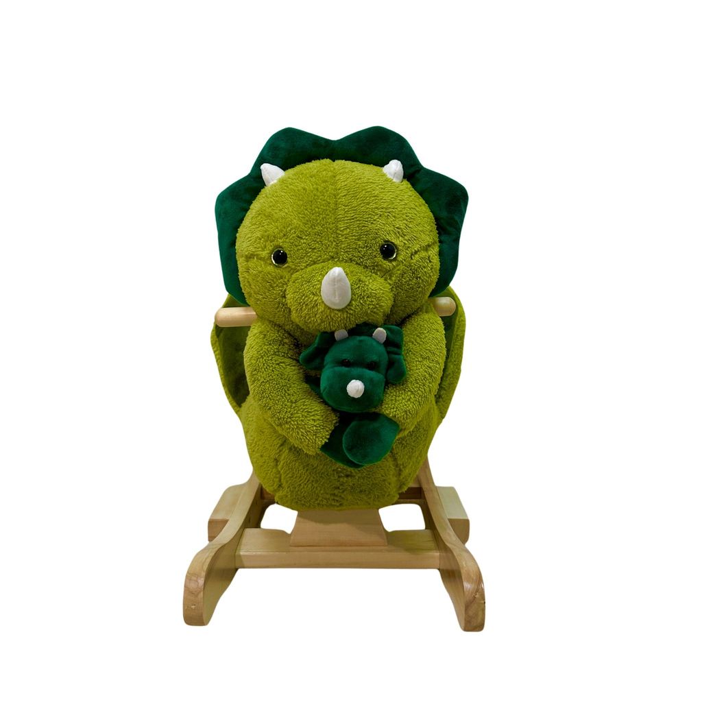 Den mjuka, gröna Dino Rex är ett charmigt gungdjur som snabbt blir en favorit. Dino Rex håller om en liten Dino skallra i famnen, som är avtagbar – perfekt för extra lek och glädje. Gungdjuret är speciellt anpassat för mindre barn från 10 månader och ger en trygg och rolig lekupplevelse, tack vare en liten sits som ger extra stöd och säkerhet för de allra yngsta.